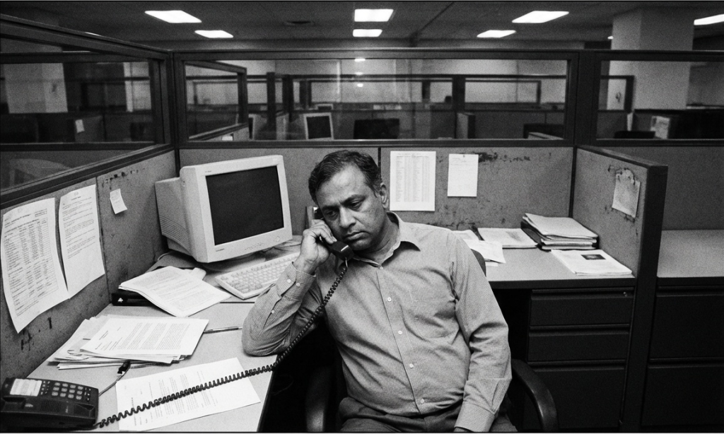 MUMBAI — Rajesh Patel remembers the golden years. Back in 2019, he could make fifteen calls before lunch, each one a small masterpiece of improvised theatre. He was “Michael from Microsoft,” “Kevin from the IRS,” and occasionally, when the mood struck him, “Officer Williams from the Social Security Administration.”